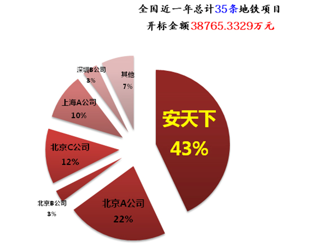 近1年地鐵項(xiàng)目各公司中標(biāo)情況表(共35個(gè)地鐵項(xiàng)目) |